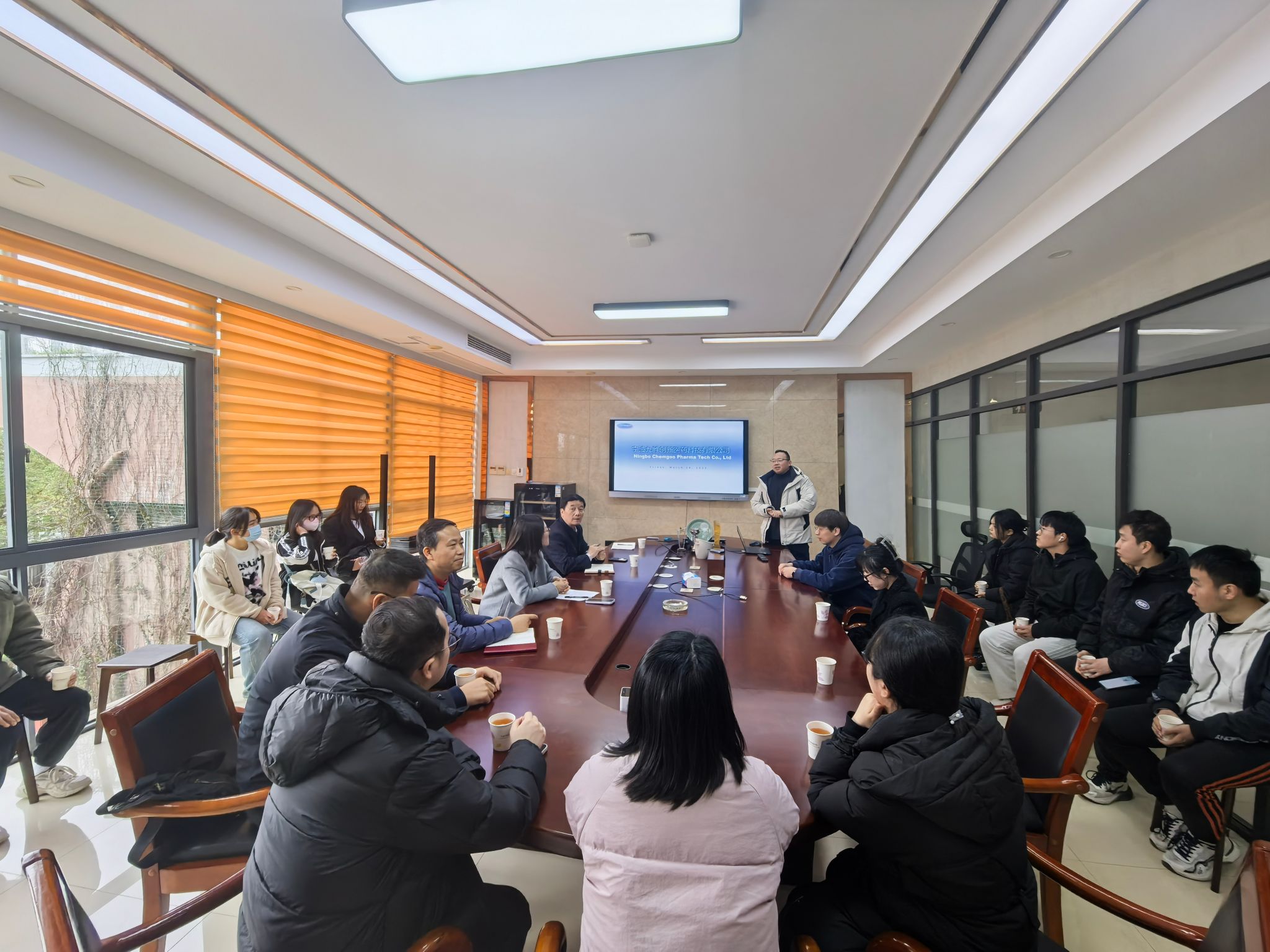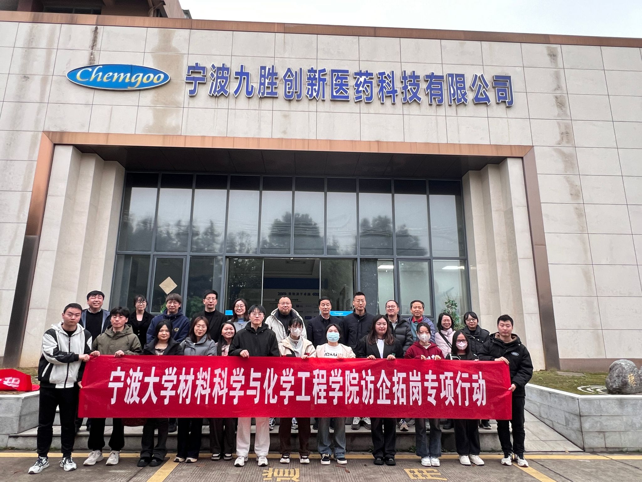 为深入了解就业市场,发掘企业用人需求,推动学生高质量充分就业,3月14日,材化学院特聘院长丁传凡、副院长周明炯、党委副书记尹慧、先进分离与催化材料研究所所长吴大朋、质谱院教师党支部党员等教师代表带领学院21名学生代表参观走访了优质企业宁波九胜创新医药科技有限公司。公司副总经理郑赞胜、人力资源经理徐卓晟等公司负责人热情接待了学院师生一行。公司高级研发主管、学院2015届优秀校友徐林峰参加座谈。