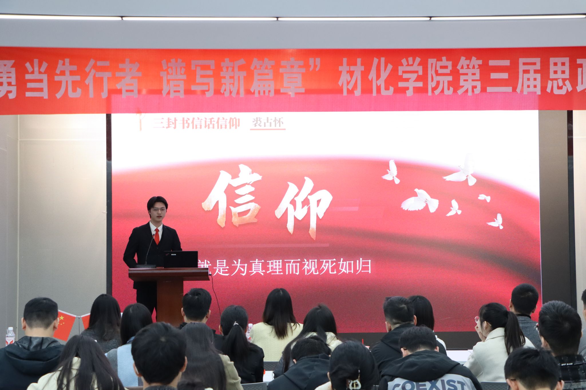 大赛伊始,尹慧进行动员讲话。她强调思政教育对青年成长的重要性,肯定了学院将思政教育与专业实践相结合的成果。并对参赛选手提出三点期待:一是以“真”动人,用真实故事传递信仰温度;二是以“新”致远,以青年视角诠释时代命题;三是以“融”聚力,在学科交叉中彰显思政厚度。鼓励同学们将个人理想融入国家发展,做心怀“国之大者”的材化人。