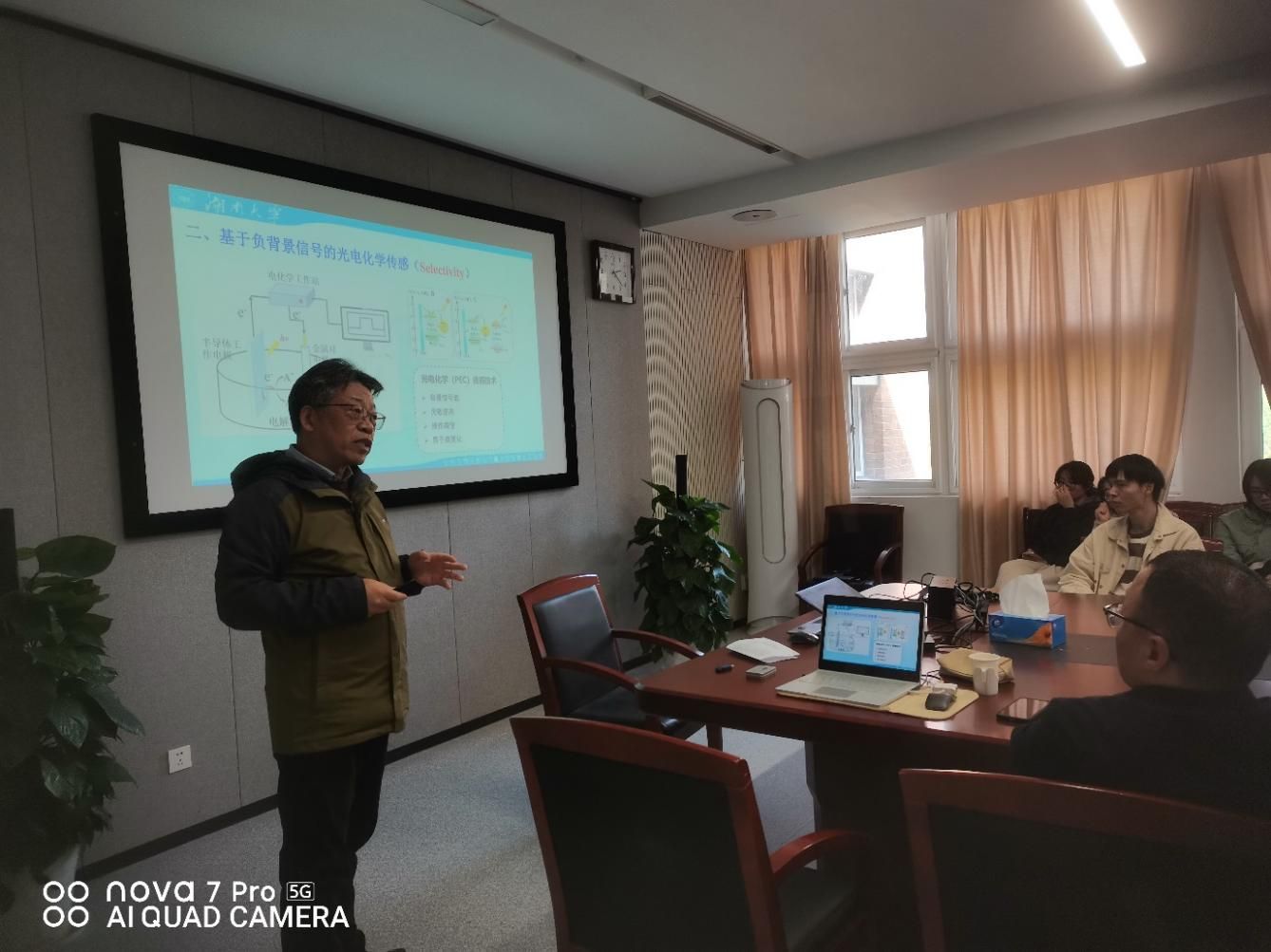 2025年4月2日下午,在我院227会议室成功举办了一场题为“新型电化学/光电化学传感策略的前沿研究”的学术报告,由湖南大学陈金华教授担任主讲嘉宾。本次报告吸引了众多师生踊跃参加,现场座无虚席,学术氛围浓厚。