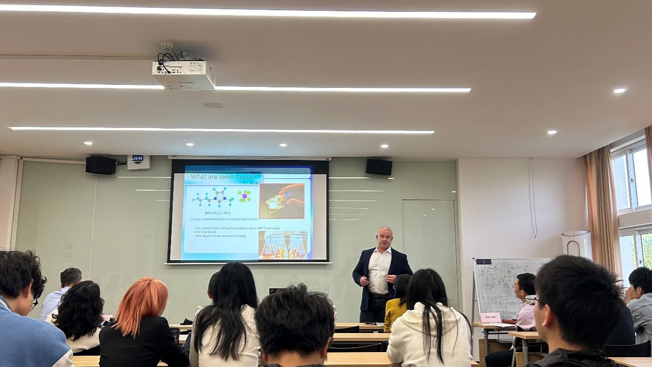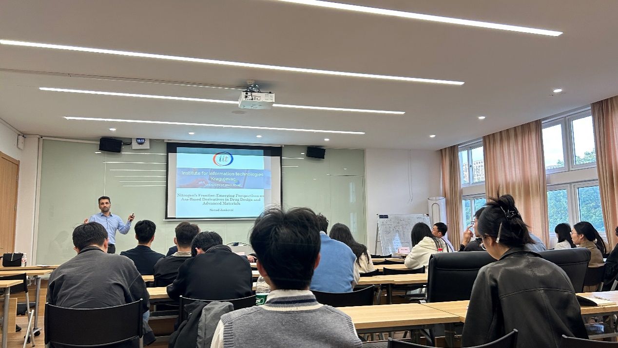交流会上,双方就中塞高校联合科研、青年学者交流以及国际项目申报等议题进行了深入探讨,并达成多项合作意向。三位专家分别作学术报告:Milan B. Vraneš教授作题为《Next-generation Hydraulic Fluids: The Role and Perspectives of Ionic Liquids》的专题报告;Snežana Papović副教授作题为《The New Ionic Additives for Safer and Durable Electrolytes in Lithium-ion Batteries》的报告;Nenad Janković教授作题为《Nitrogen’s Frontier: Emerging Perspectives on Aza-based Derivatives in Drug Design and Advanced Materials》的报告。报告内容前沿、生动精彩,展示了相关领域的最新科研进展和创新思路,引起在场师生的浓厚兴趣。